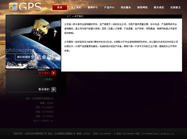 该款GPS导航仪公司网站模板采用了黑色为基调设计,使网站显得严谨稳重与产品贴合度较高。整体以图片为主题的诉求方式格局选用了独特的个性化设计,将产品图片水平排列于页面。即达到了最大限度展示产品的效果,又不缺少美感。