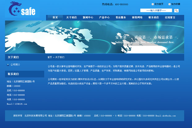 该款保险柜销售公司网站模板采用了高贵的黄色为基调设计,不同层次的渐变后使网站具有了高贵富有、温暖、希望的感觉。整体以图文分开排列的独特格局的设计,将产品图片幻灯方式置于导航条下方。即达到了最大限度展示产品的效果,又不缺少美感。