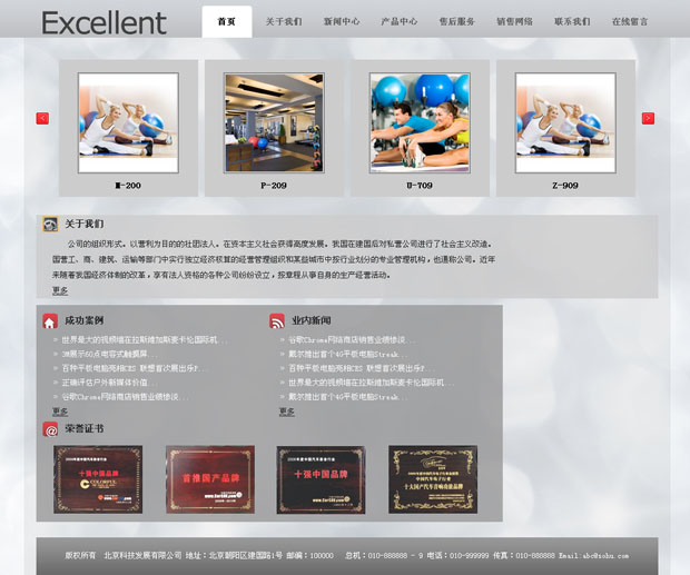 该款网站采用中性的灰色为基调设计,使网站简洁素雅减少因浏览过久而产生的视觉疲劳。自由个性的两行六列设计格局,显得素雅,条理清晰。整版图文适当搭配很好的衬托出产品的特色,水平排列的产品图片让浏览者更好的了解到产品信息。