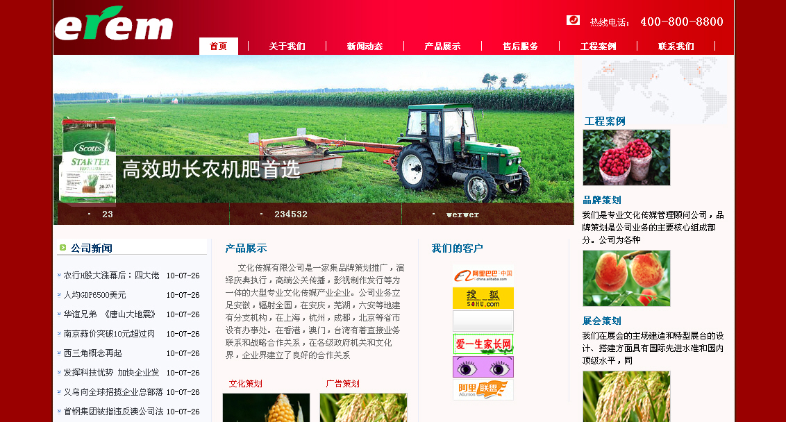 农业种植网页模板红色企业网站模板