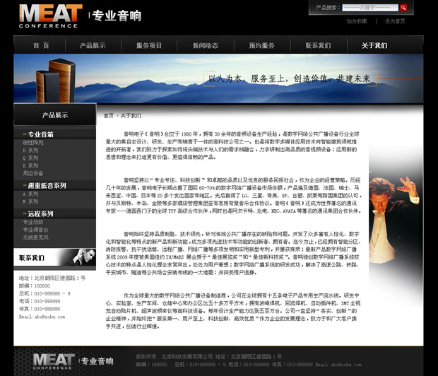 演出音响的网站模板是音响一类的网站模板。也是自主建站网站源码模板系统下的一款。音响网站模板,适合音响商城使用。突出音响网站的特有的特色。我们可以为您提供html模板,也可以是包含音响模板的源代码,有前后台,代码开源,易于修改,模板集合前后台,下载就可以用.